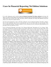CNU - Free PDF Cases in financial reporting 7th edition solutions Kobo Gutenberg